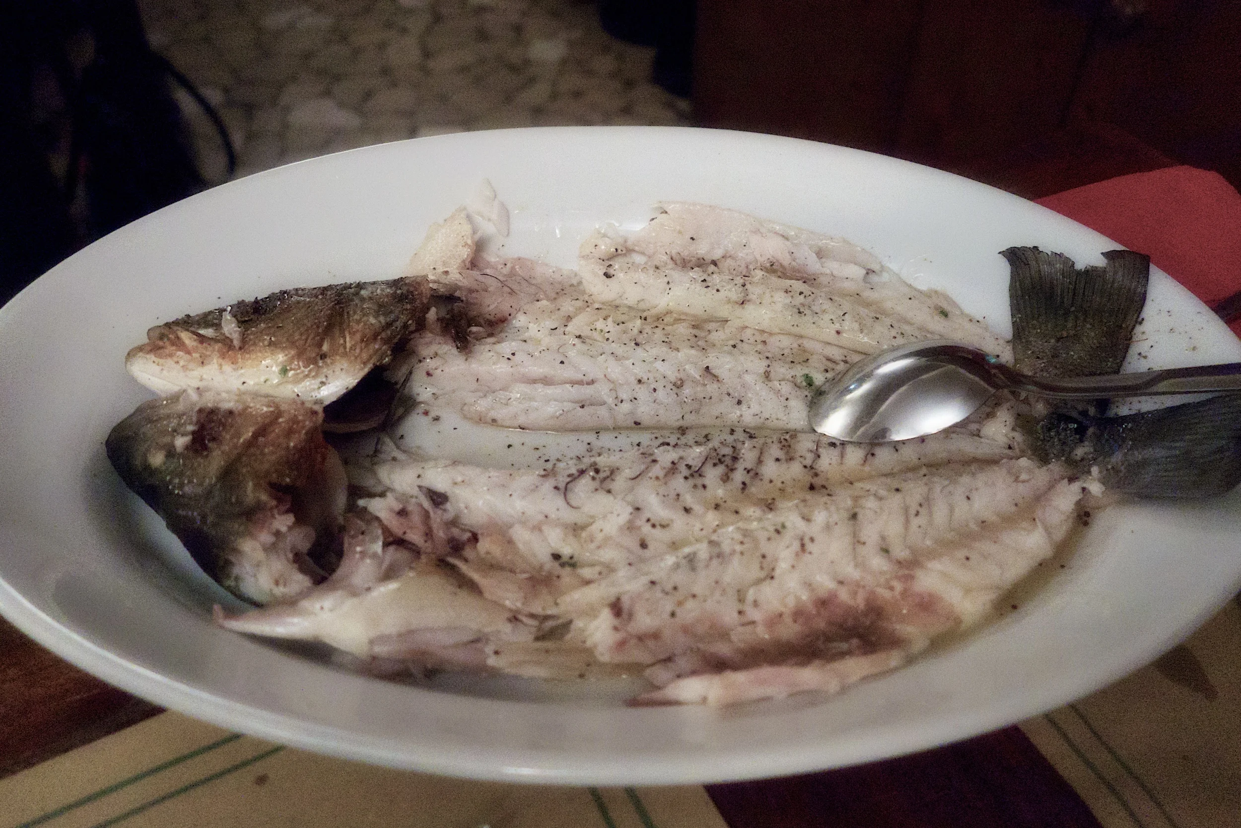 Sefano prepared the branzini at our table with flair – I especially liked the last part when he squeezed all the juice from the fish’s carcass and added lemon and olive oil. I’m going to have to try that at home.