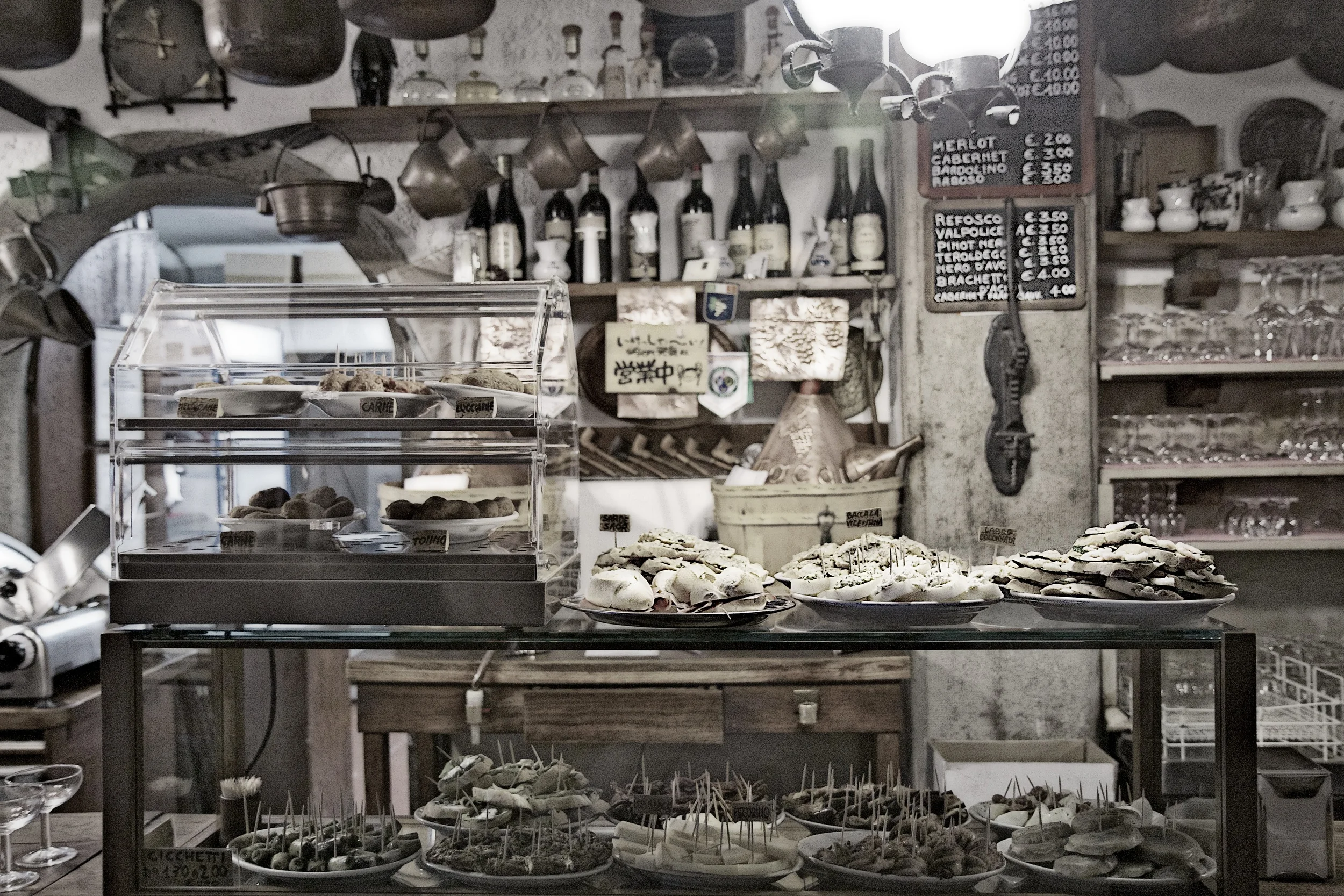 Worst of all, there was no mention of the Cicchetti bars!! Pronounced “chee-KET-eeh,” cicchettiare Venice’s answer to Spain’s tapas. The best cicchetti bars are located in the back alleys around the Rialto fish market. Cantina Do Mori is said to have been in continuous operation in its current location since 1462.