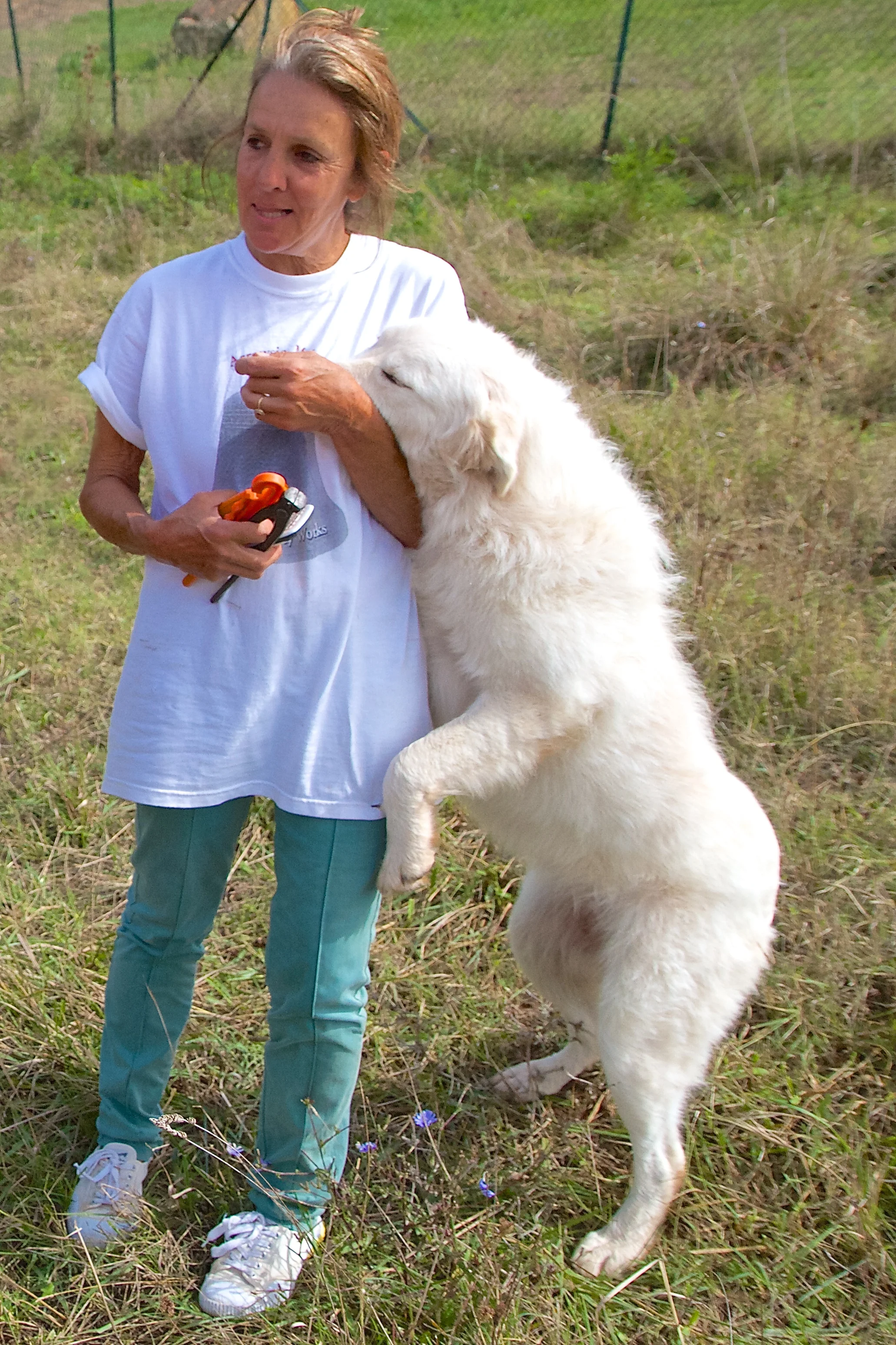 On my first visit to Chianti Cashmere, my group was welcomed by a swarm of excited, four legged puff balls. Nora had a soft spot for this precious breed of dog, and in fact, had just welcomed a new litter of Bolognesi to her pack. Today, she has only five Bolognesi left from those days. Because of the increasing threat of predators, she had to switch her attention to larger guard dogs to protect her herds. At last count, Nora had about a dozen Abruzzo guard dogs - a breed of shepherd dogs raised for centuries in southern Italy to combat wolves and bear.